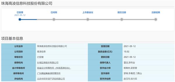 5月12日,资本邦了解到,珠海高凌信息科技股份有限公司(下称“高凌信息”)科创板IPO获上交所受理。