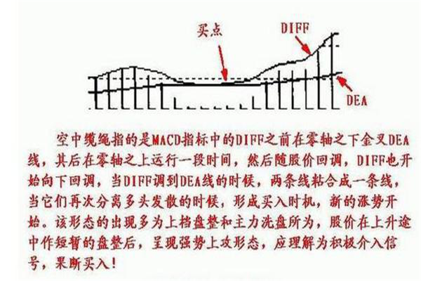 这 个形态跟空中缆绳的主要区别就是,空中缆绳不担保公司经营范围死叉,而空中缆车会发生死叉,比较相似的一点就是大家均线都是多头排列。如上图所示,DIF在0轴600095股票之上死叉 DEA线,但是不下穿0轴先,过几天就再次0轴以上金叉DEA了,这种形态多数是主力洗盘所为,股价经过短暂的调整之后,表现出强劲的上升动力,这是积极 的介入信号,如果能连续的放量,就更加机不可失了。见下图: