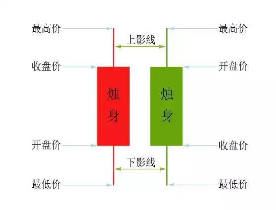 2、当收盘价低于开盘价时,实体部分一般绘成绿色或黑色,称为“阴线”
