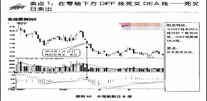农产品股票_北京普思投资MACD指标的数个买点在上篇文章已经介绍了,所以本文接着讲讲它的几个卖点吧,老规矩,我们还是会以图片案例的形式来分析下,MACD指标卖点到底都在哪里呢?欢迎小伙伴继续和小编来看看吧。北京普思投资如图例农产品股票60所示,2010年1月22日,中国船舶(600150)的DEA线和DIFF线在0轴附近出现死叉形态。这个形态表