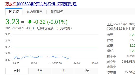 <千股跌停p> 12月20日9点35分,万家乐盘中打开跌停,现报3.23元,成交5498.53万元,换手率8.03%。该股之前于9点26分跌停。