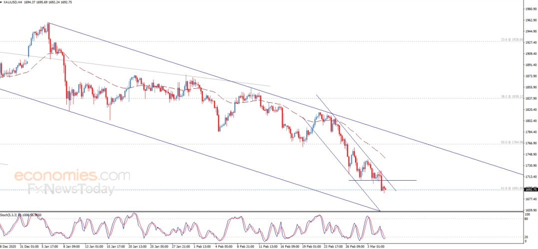 知名财经资讯网站Economies.com则表示,金价已经成功达到他们所等待的1692美元目标价,并正在试图打破该底部。这增加短期和中期基础上的看跌环境,并且有扩大看跌浪潮的机会,水平将下个主要目标价推至1655美元。