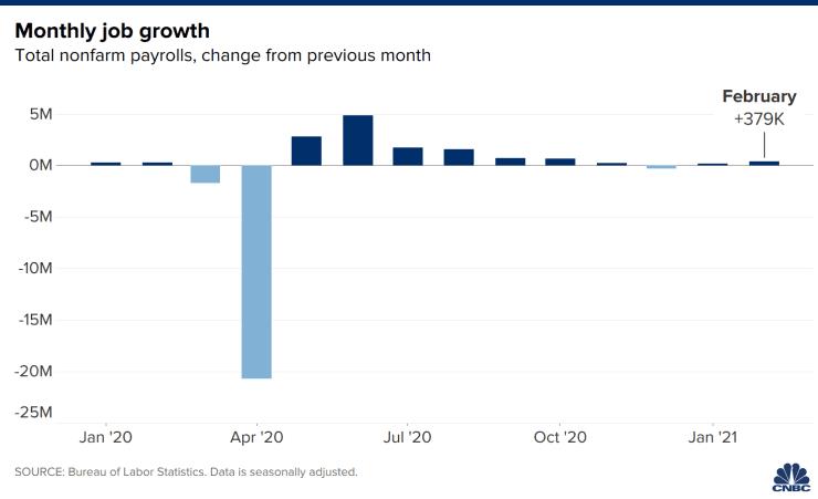 凯投宏观首席美国经济学家Paul Ashworth说,最新的就业数据是经济复苏的好兆头。他在给客户的一份报告中说:“由于新冠肺炎病例数量仍在急剧下降,更多大规模的财政刺激措施正在实施,疫苗接种计划可能在年中之前达到临界规模,美国有望在今年恢复大量失去的工作。”