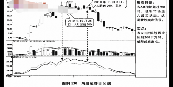 华新水泥股吧_000793基金小编不久前已经为大家介绍完了ARBR指标的三个买点,不知道大家是否还记得,如果不记得或者没看过,在本网还能搜索的到,今天我们继续就这个指标来看看它的卖点都在哪里,小编带来了ARBR指标卖点介绍。卖点1:AR高于200-------指标回落并跌破200时卖出如图例1